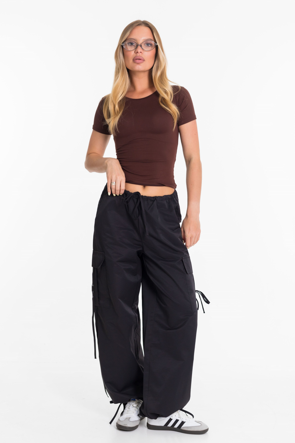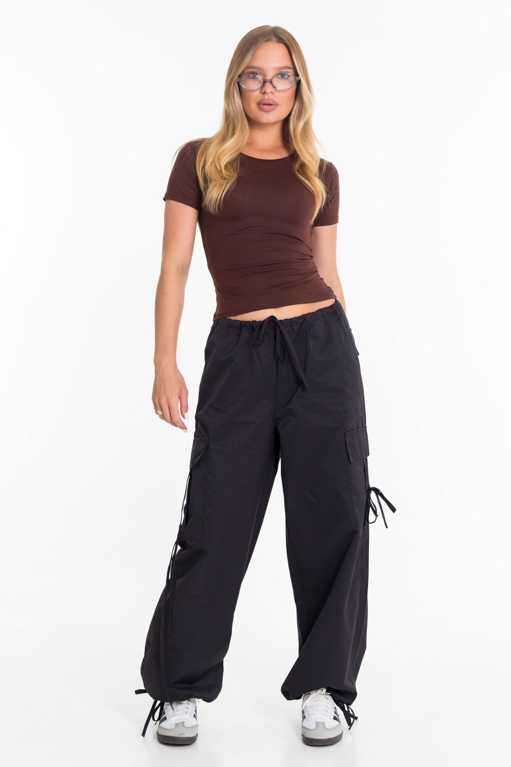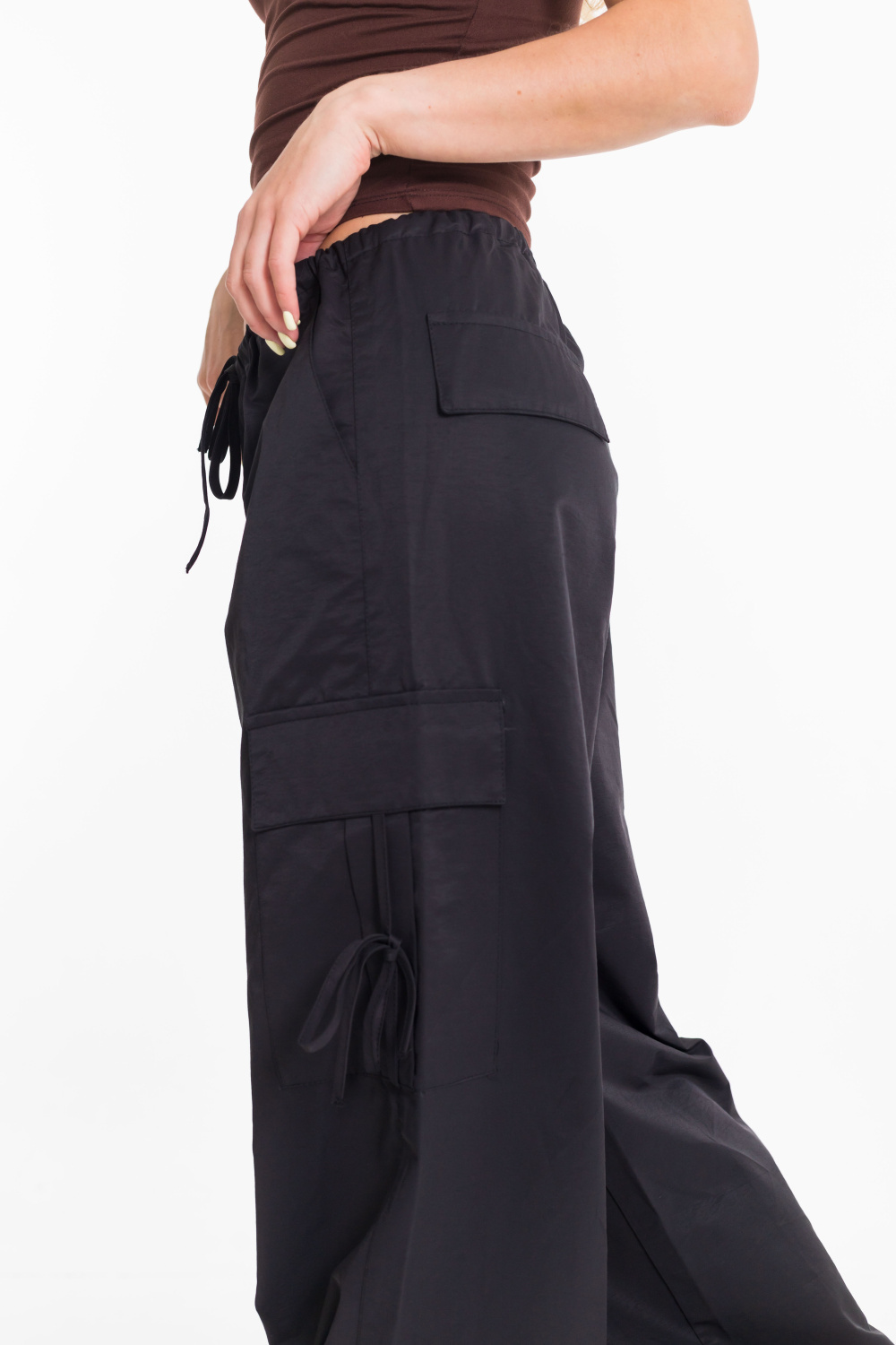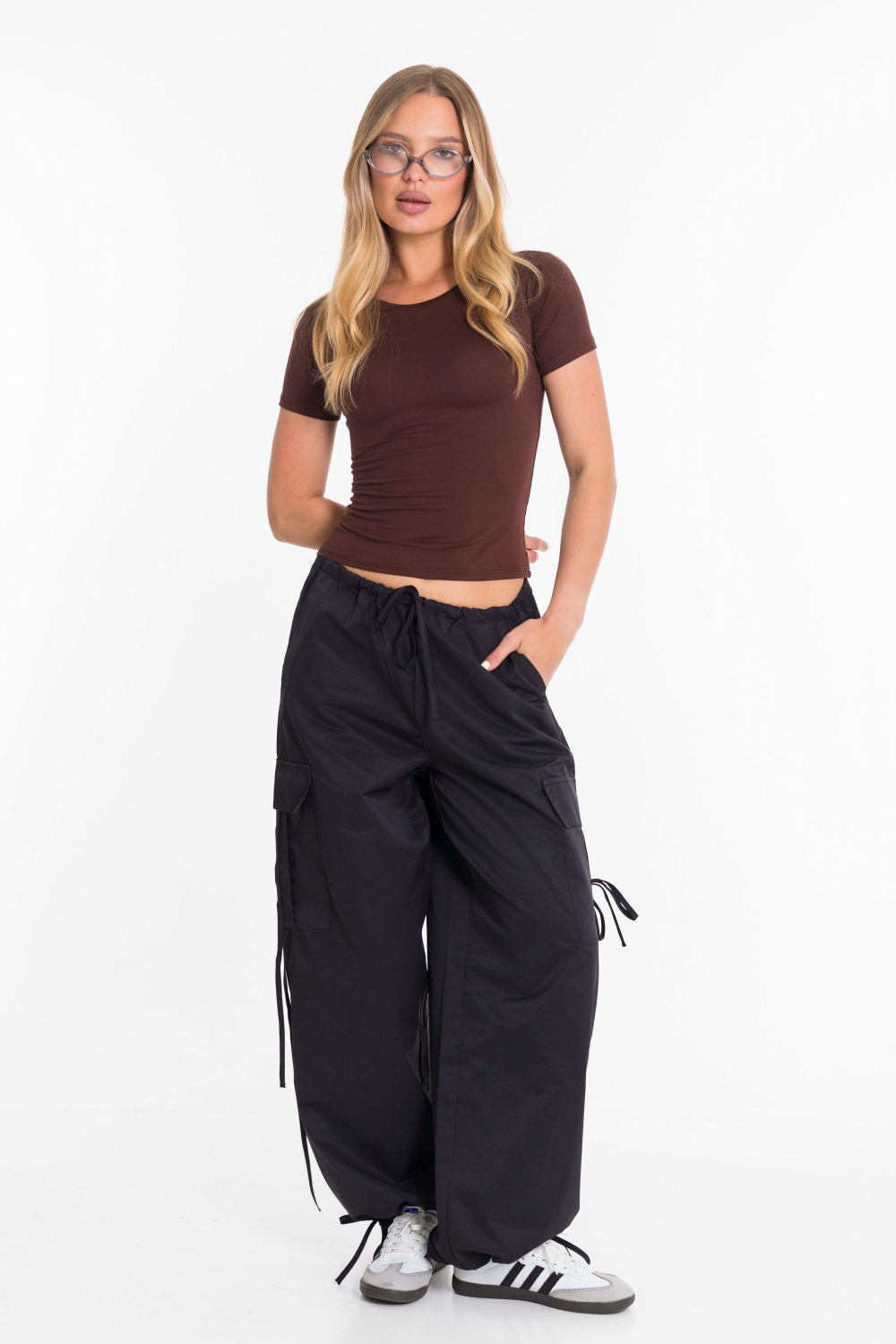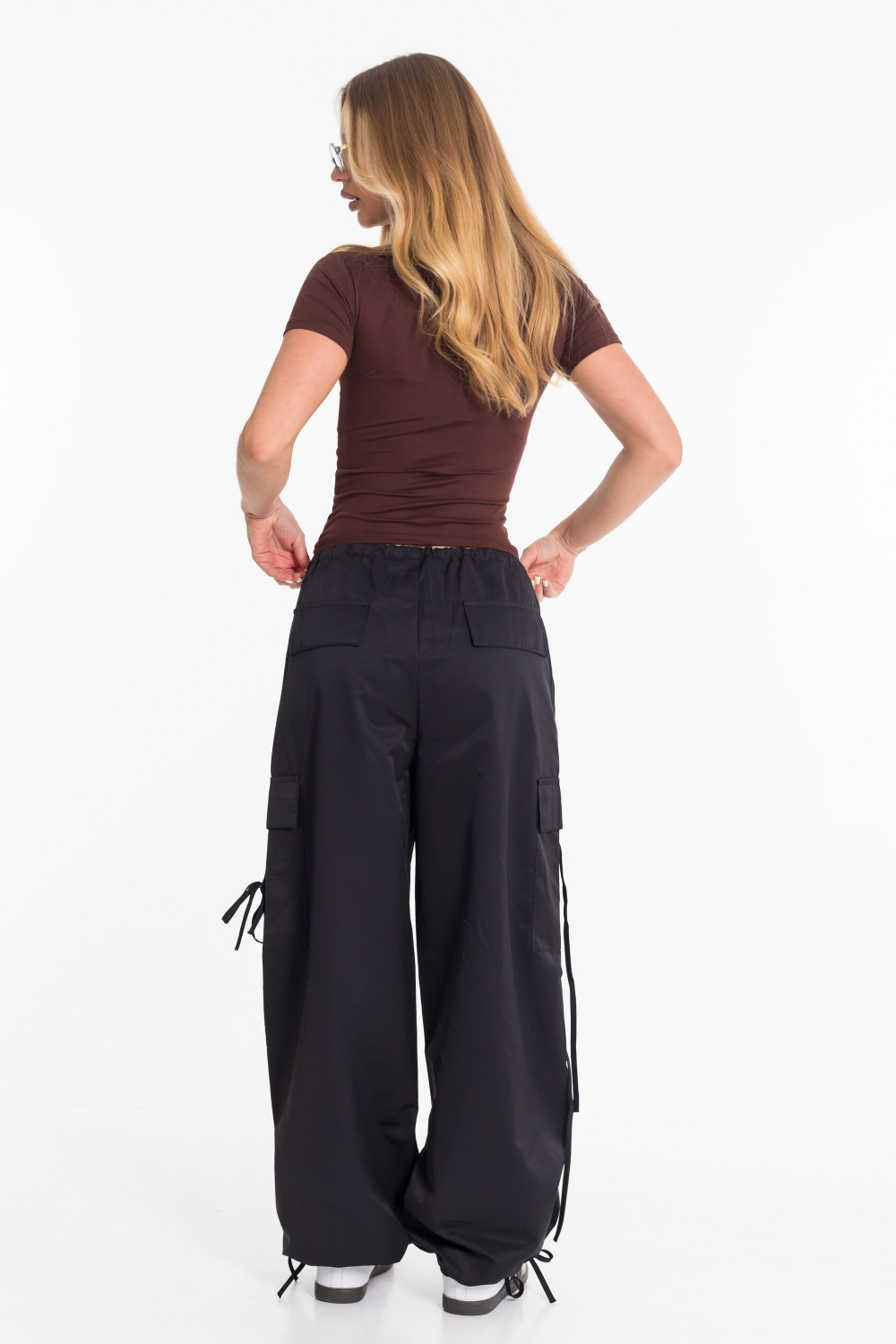 Женские брюки-карго из плащевой ткани сочетают в себе практичность и современный стиль. Модель свободного кроя с регулируемым поясом на шнуре обеспечивает удобную посадку и не сковывает движений. Прочное и легкое плащевое полотно дарит комфорт в течение всего дня, а функциональный дизайн с множеством карманов и стильными затяжками позволяет легко сочетать брюки как с объемными худи и кроссовками, так и с облегающими топами и кедами. Отличный вариант для повседневных уличных образов.
