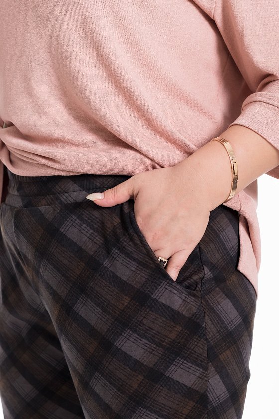 Женские брюки прямого кроя из академика серого цвета с набивным рисунком клетка будут отличным выбором для создания стильного и элегантного образа.