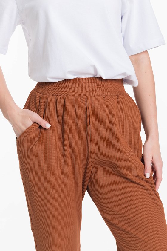100% хлопок обеспечивает воздухопроницаемость и мягкость материала, что делает такие брюки отличным выбором для повседневного использования. Вафельная текстура материала придает изделию интересный и стильный вид.