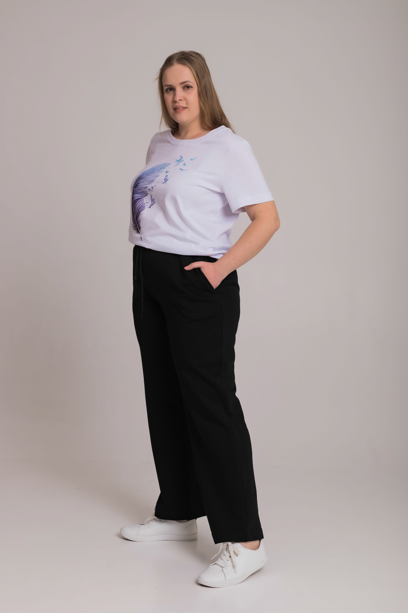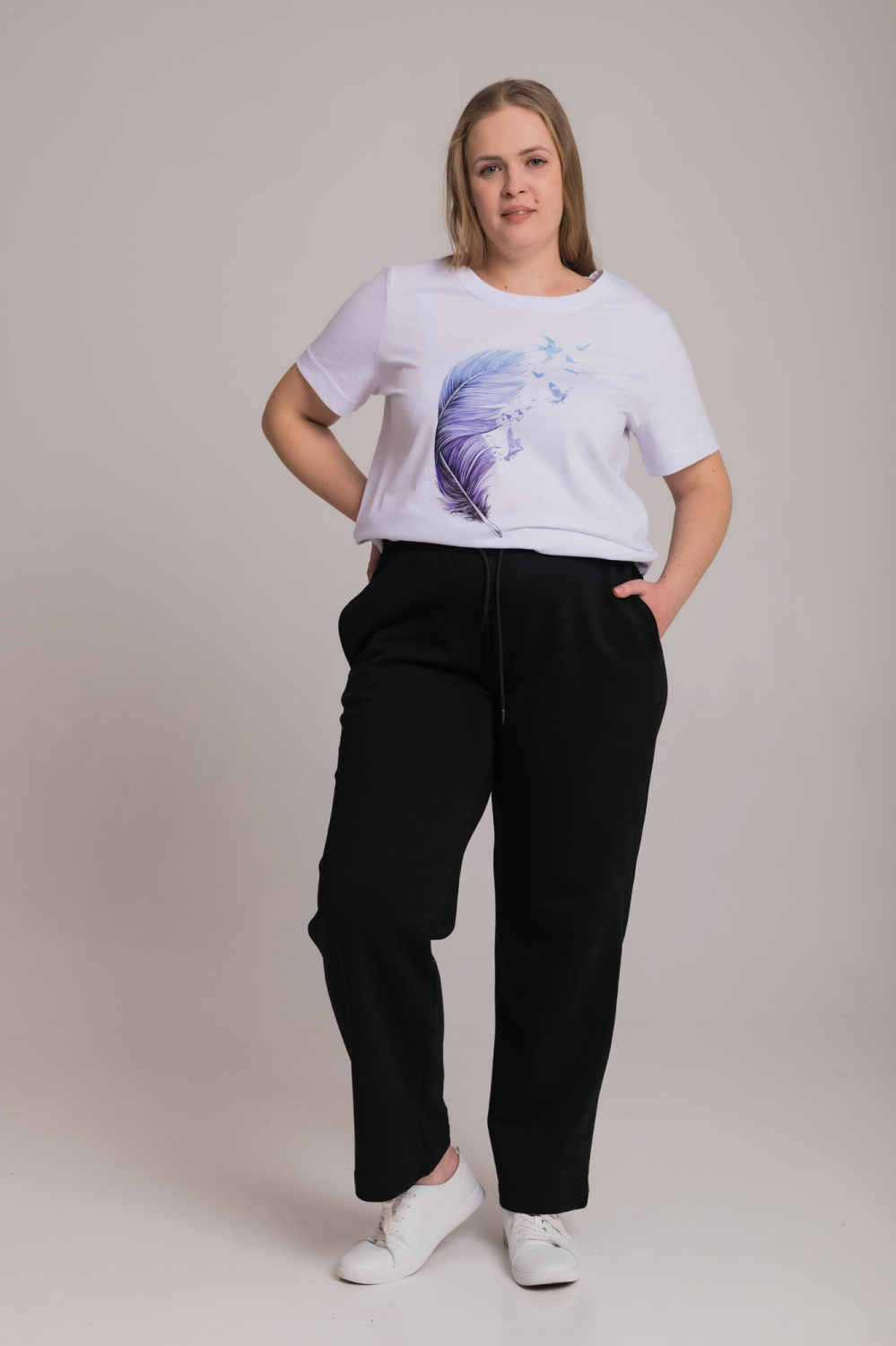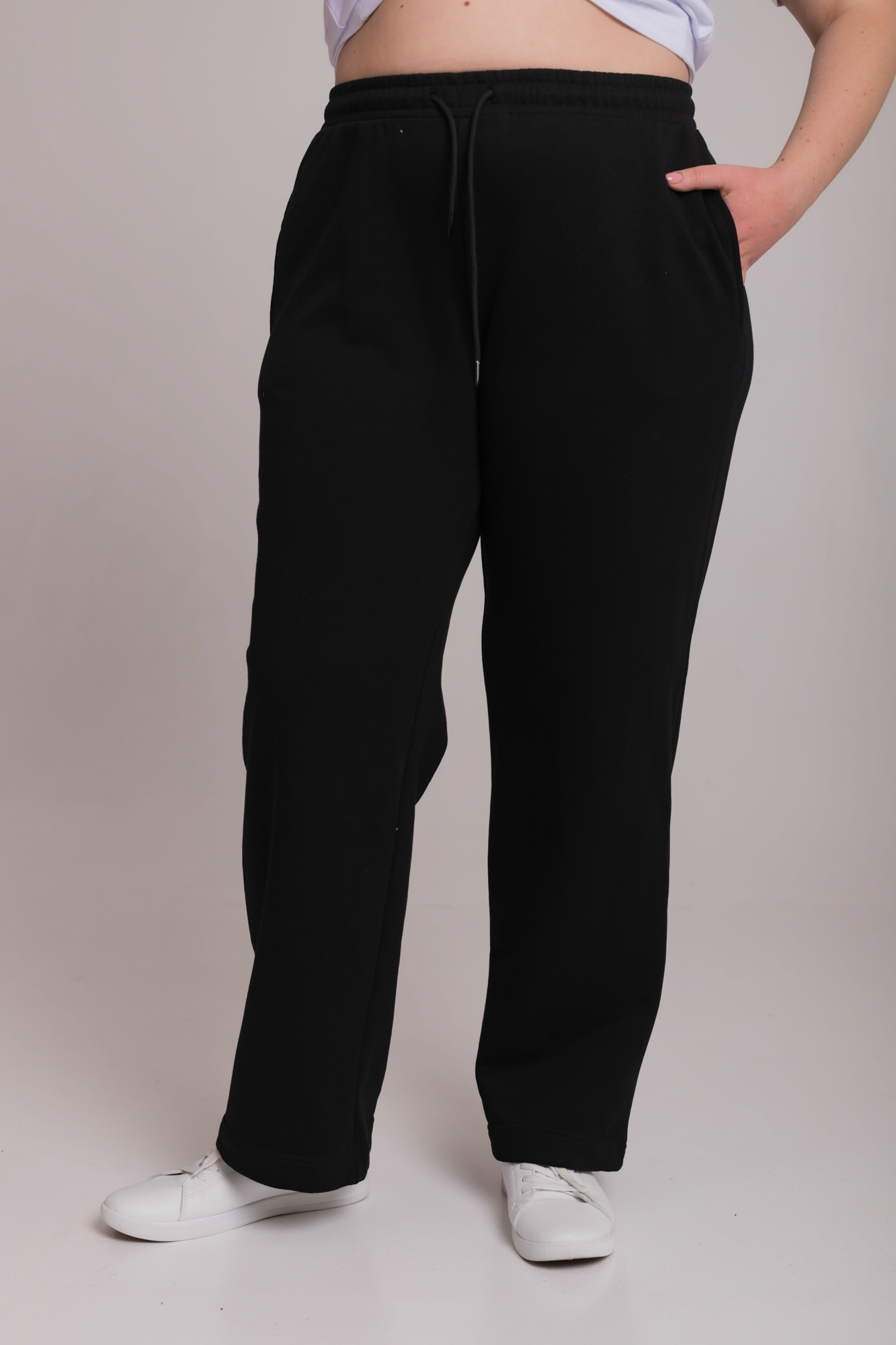 Брюки прямые, из однотонного футера воздушки с притачным поясом,
