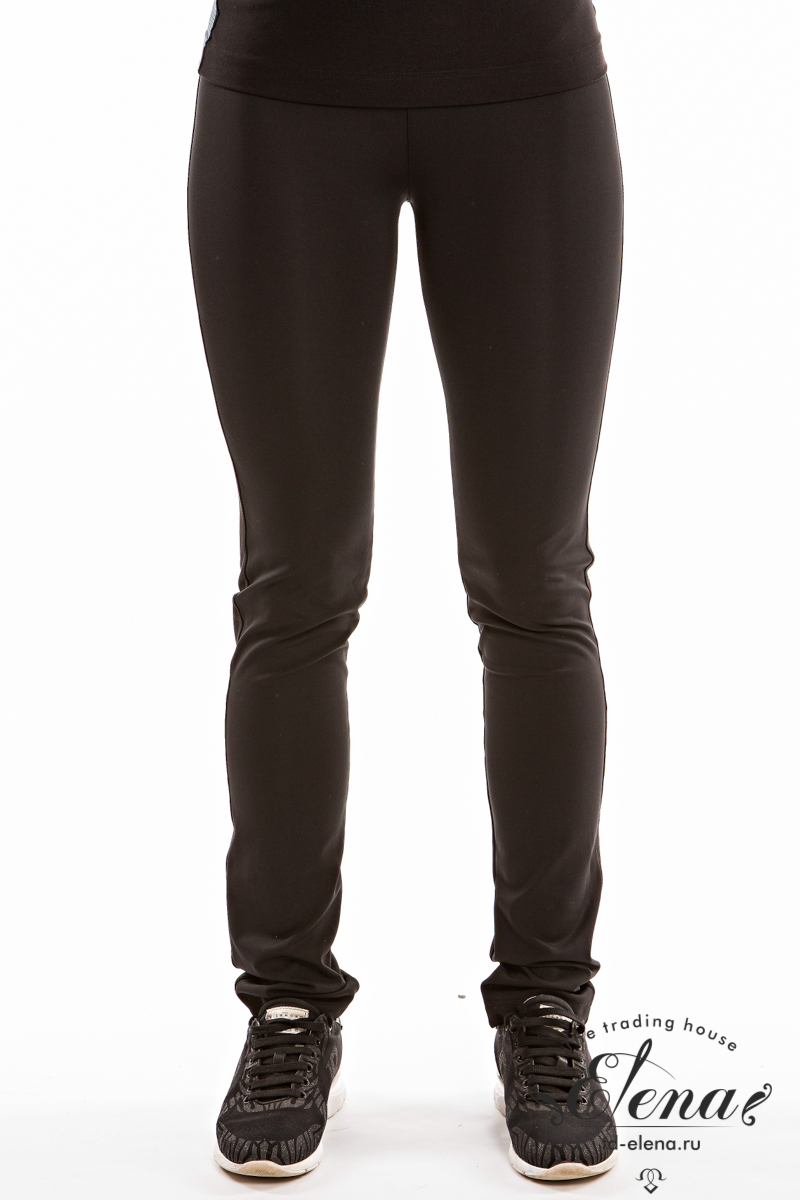 Брюки из бифлекса черного цвета. Спереди цельнокроенная кокетка. Притачной пояс на широкой резинке.