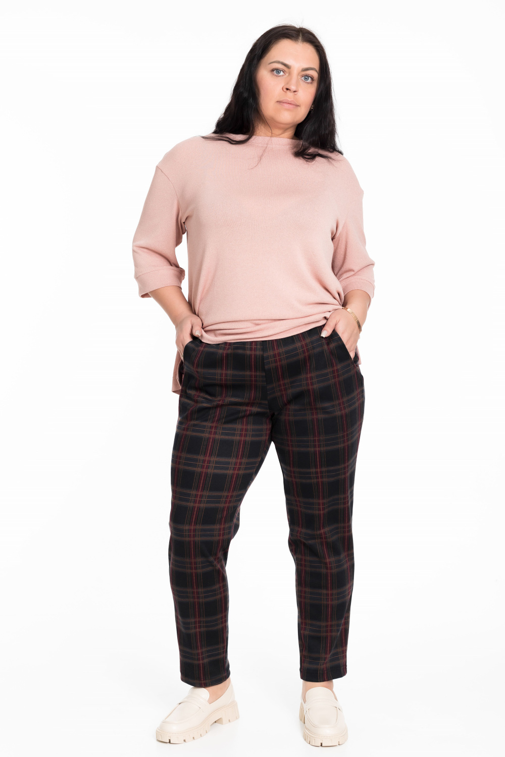 Женские брюки прямого кроя из академика синего цвета с набивным рисунком клетка будут отличным выбором для создания стильного и элегантного образа. Притачной пояс на резинке обеспечит комфортную посадку и удобство при ношении. Боковые карманы добавят функциональности и удобства, позволяя хранить мелочи или просто расслабиться, положив руки в карманы.