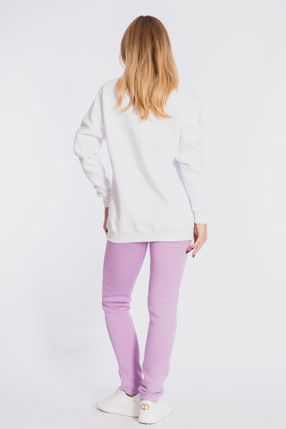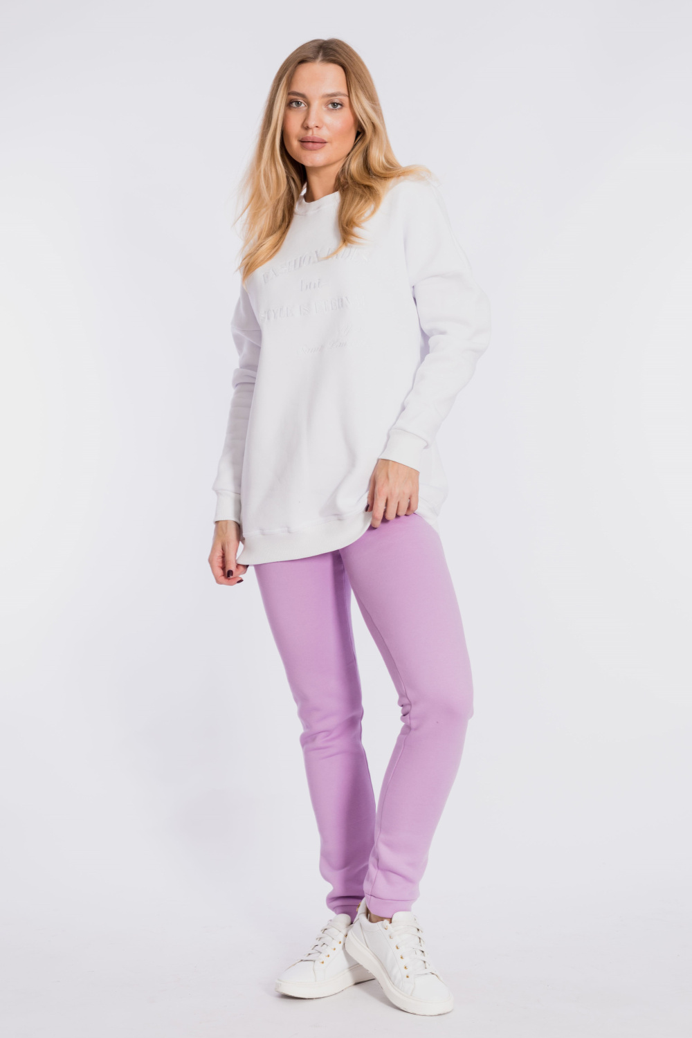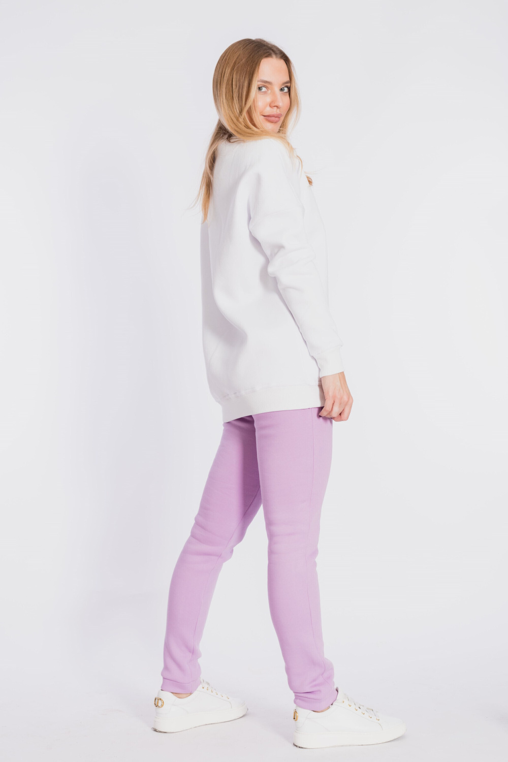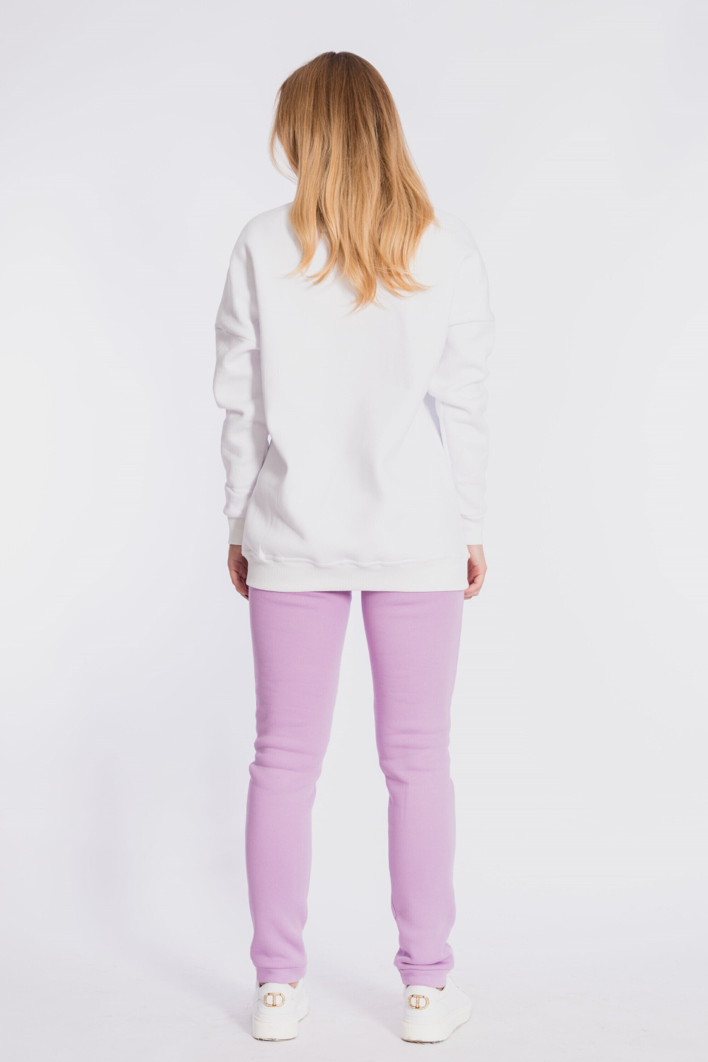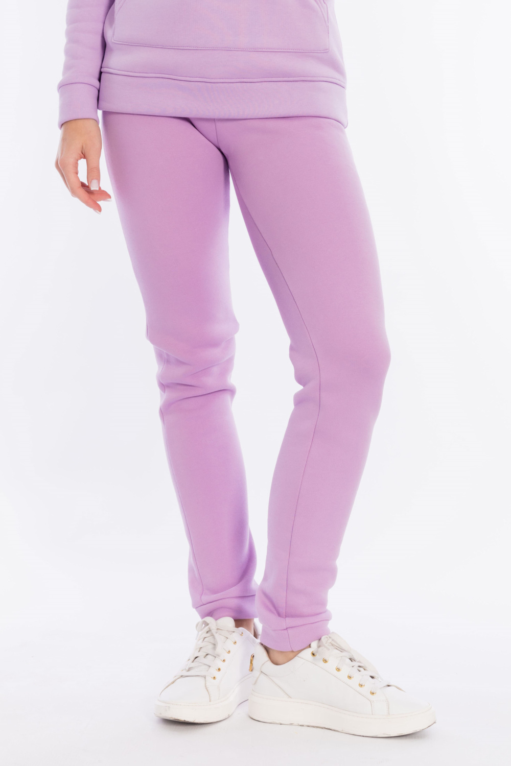 Брюки с поясом на резине и манжетами внизу. Выполнены из полотна с начёсом.