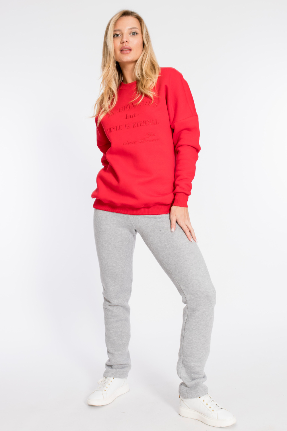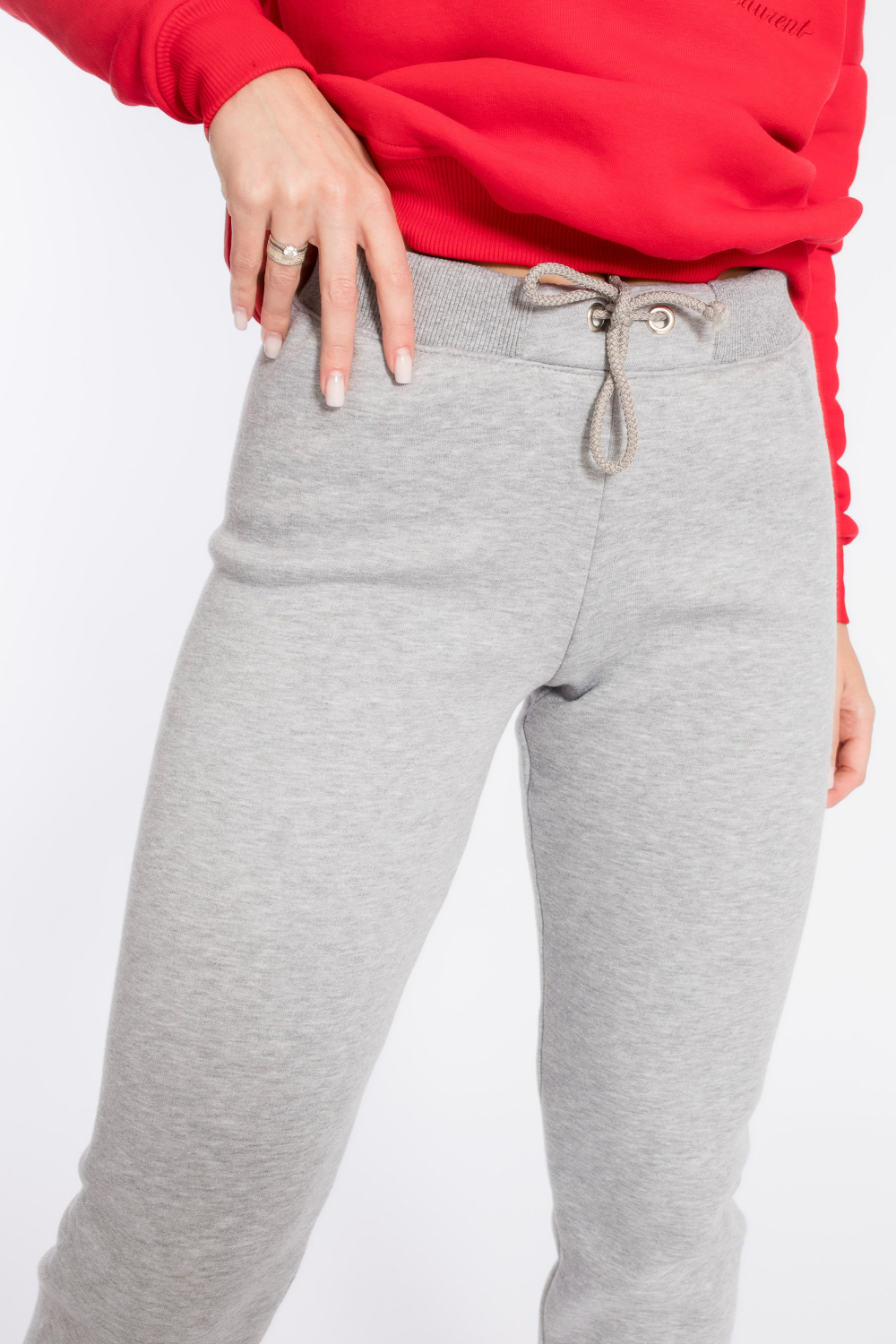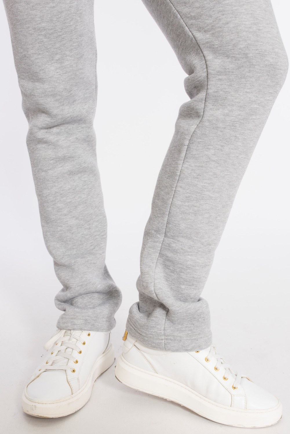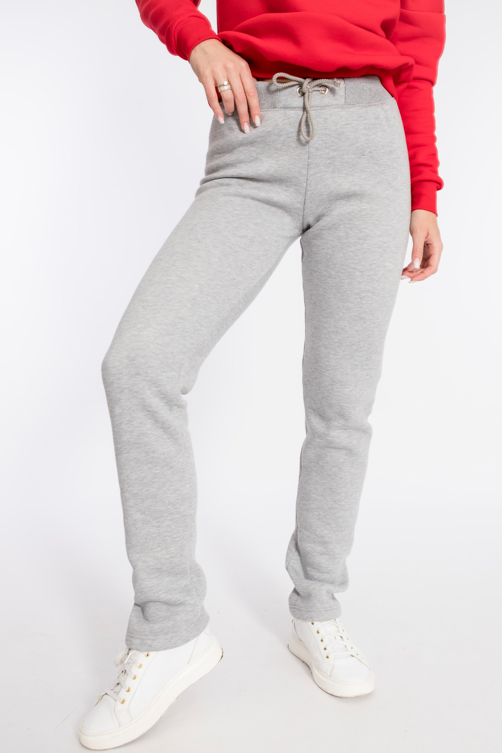 Тёплые спортивные брюки пригодятся для прогулок в холодное время года. Брюки выполнены из полотна с начёсом. Посадка стандартная, на талии, в пояс вставлена резина. Спереди пояс с люверсами, через которые проложен шнур.