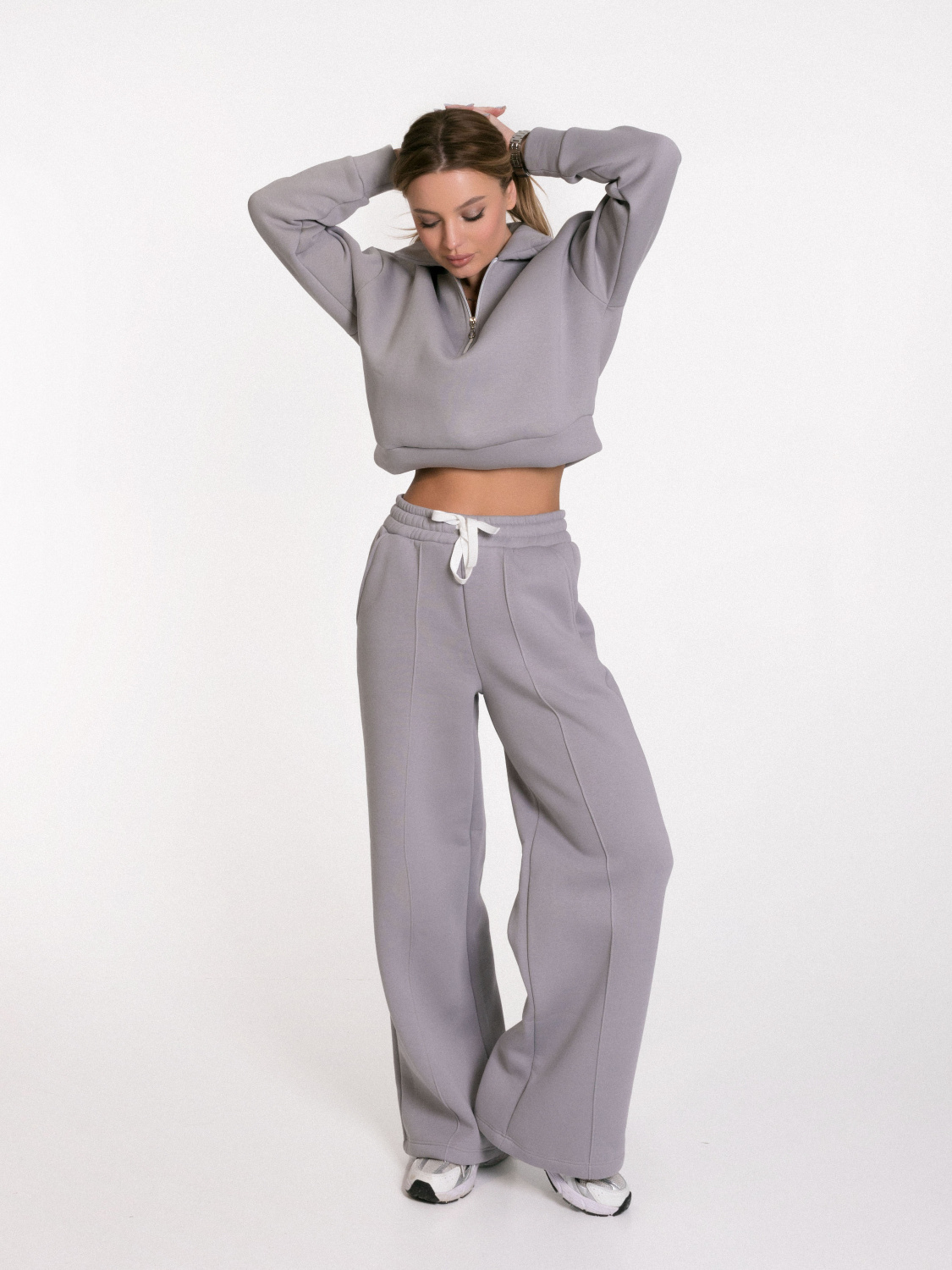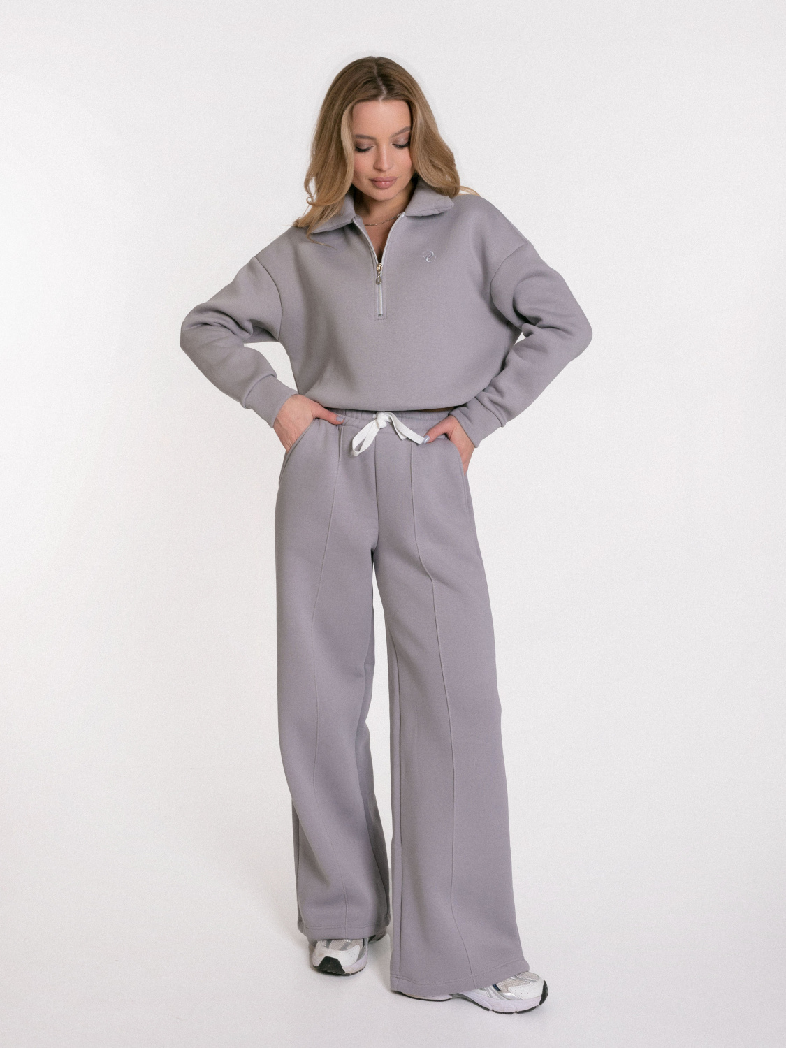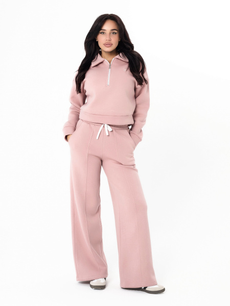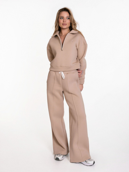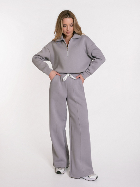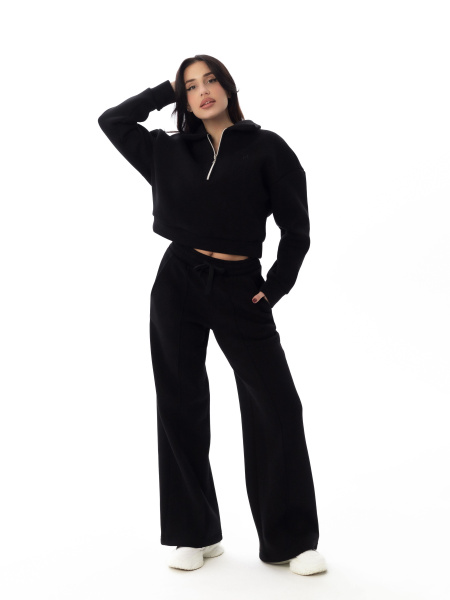 Женские брюки выполнены из полотна с начесом. Модель с декоративной отстрочкой в виде стрелок спереди. Удобный пояс на резинке со шнуром обеспечивает идеальную посадку. Практичные боковые карманы. Универсальная модель для создания стильных повседневных образов.