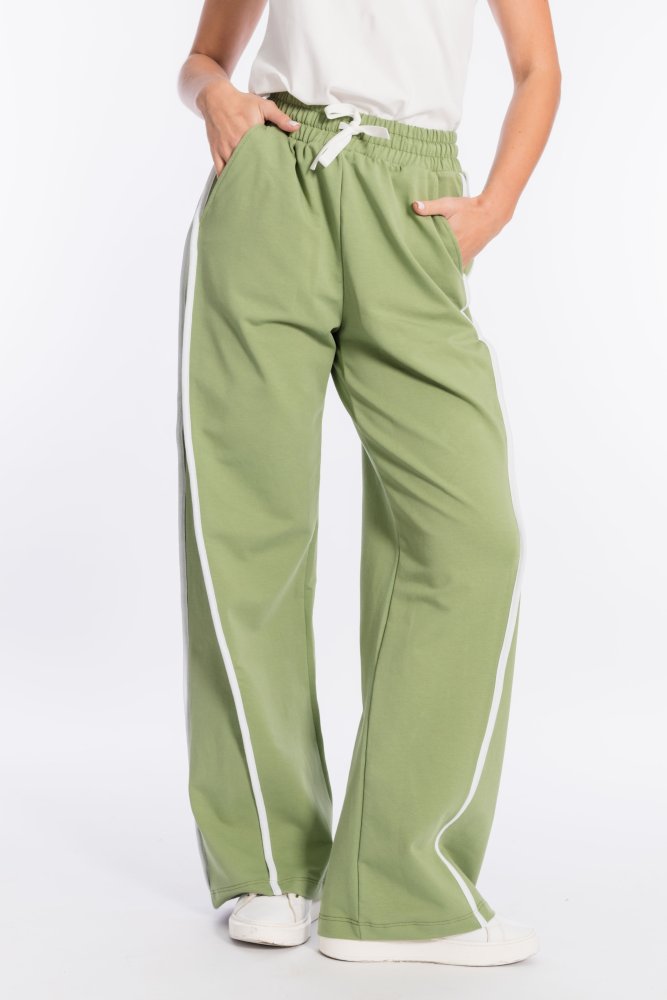 Тёплые спортивные брюки пригодятся для прогулок в холодное время года. Брюки выполнены из полотна с начёсом. Посадка стандартная, на талии, в пояс вставлена резина. Спереди пояс с люверсами, через которые проложен шнур.