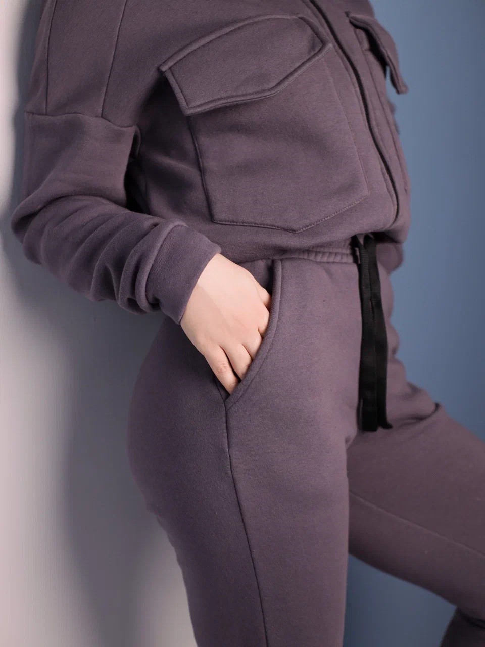 Женские брюки выполнены из полотна с начесом. Модель с боковыми карманами для практичности. Эластичный пояс со шнуром обеспечивает идеальную посадку по фигуре. Декоративные вытачки по низу брючин добавляют модели элегантности и визуальной легкости. Уютная и стильная модель для повседневной носки и отдыха.