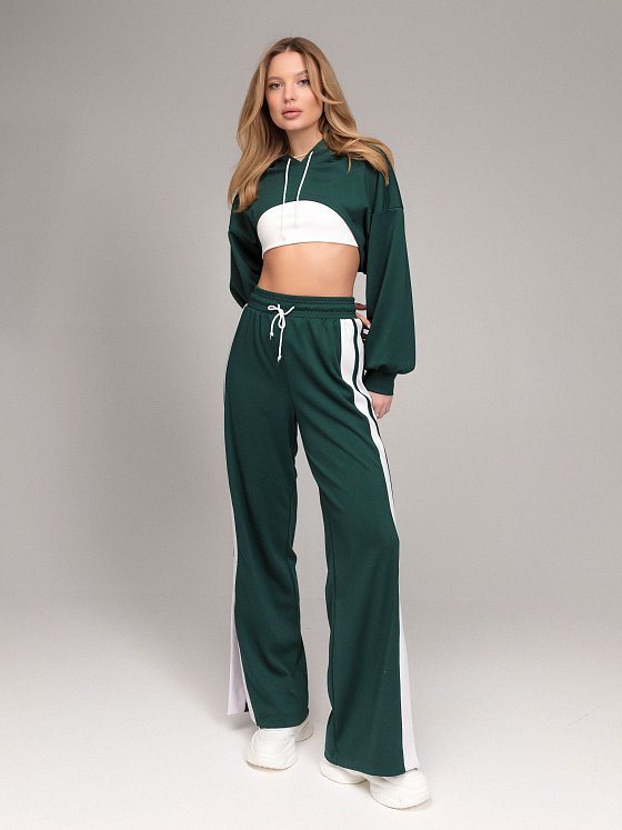 Женские брюки выполнены из полотна "академик". Элегантная модель с контрастными боковыми планками по всей длине. На верхней части планки настрочен декоративный лампас из основного полотна. Стильный разрез брючин до низа добавляет динамики силуэту. Притачной пояс с резиной и шнуром, пропущенным через петли, обеспечивает идеальную посадку. Строгий и лаконичный дизайн для создания стильных образов.