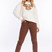 Брюки женские из полотна с начёсом. Низ брюк на манжетах, пояс на резине со шнуром, по бокам расположены карманы.
