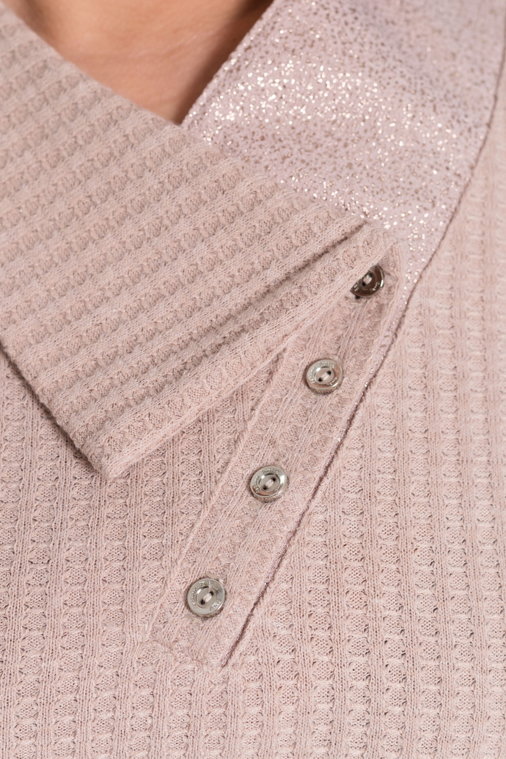 Джемпер из однотонной рибаны "клетка". С втачным рукавом длиной 3/4. Спереди расположен карман. На кармане и воротнике джемпера вставки из отделочного полотна.
