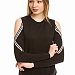 Молодёжный джемпер из футер петли с лайкрой. С длинным втачным рукавом на манжете, с притачным поясом и круглым вырезом горловины. Отделкой в джемпере являются открытые участки рукавов на плечах, оформленные лампасной тесьмой.