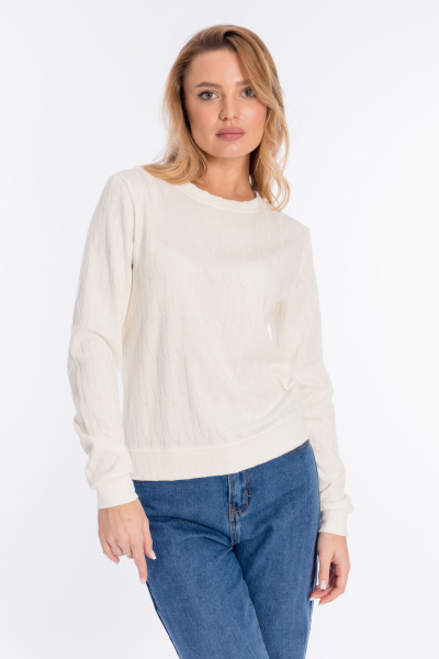 Женский джемпер выполнен из полотна "ангорка жаккард". С длинным втачным рукавом и элегантным округлым вырезом горловины, оформленным планкой. Рукава джемпера с манжетами, по низу притачной пояс. Невероятно мягкий и тёплый джемпер - идеальный выбор в прохладное время года, легко впишется в повседневный гардероб.