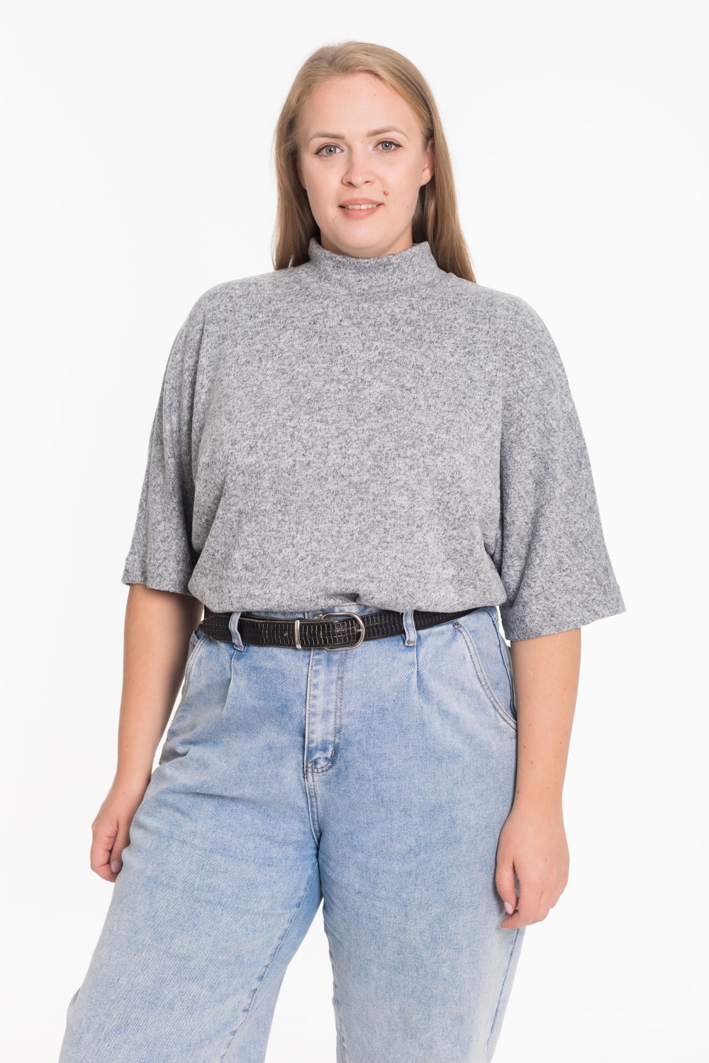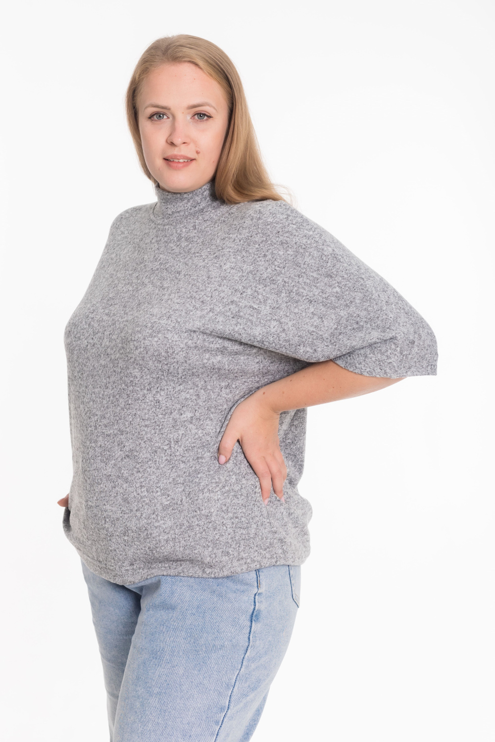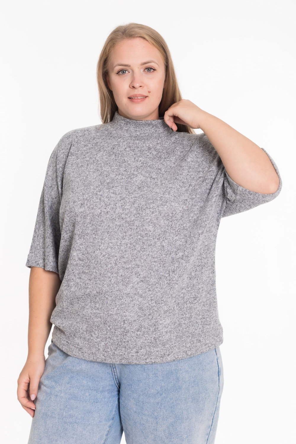 Женский джемпер из мягкой меланжевой "ангоры" — стильная и уютная модель на каждый день. Изделие выполнено с цельнокроеным рукавом длиной чуть ниже локтя, что придаёт образу женственность и лёгкость. Воротник-стойка мягко облегает шею, создавая элегантный силуэт. Идеальный выбор для прохладных дней и комфортных повседневных образов.