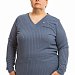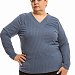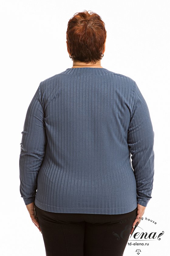 Джемпер выполнен из рибаны в широкий рубчик. Силуэт прилегающий. В шов планки V-образного выреза горловины вшит декоративный флажок.
