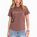 Футболка выполнена из однотонной кулирки с лайкрой. С коротким втачным рукавом и притачной планкой по круглому вырезу горловины. Спереди нанесён принт.