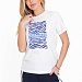 Женская футболка с принтом спереди изготовлена из хлопкового полотна с добавлением лайкры. Футболка с коротким втачным рукавом и круглым вырезом горловины, что придает ей классический стильный вид. Такая модель футболки отлично сочетается с джинсами, брюками или юбкой. Изготовленная из натуральной ткани, футболка обеспечит комфорт в течение всего дня.