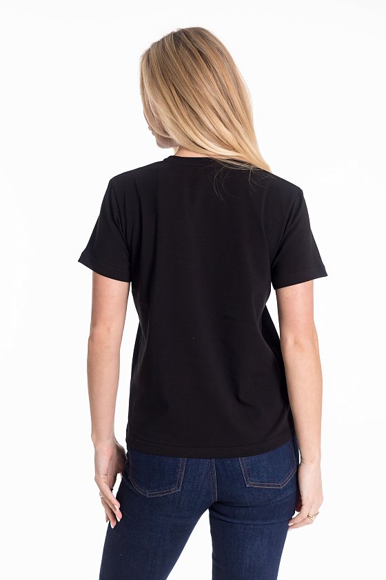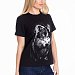 Женская футболка с эффектным принтом в виде волка выполнена из хлопкового полотна с добавлением лайкры, что обеспечивает комфорт, эластичность и хорошую воздухопроницаемость. Модель с коротким втачным рукавом и круглым вырезом горловины отличается лаконичным, но выразительным дизайном. Универсальный базовый чёрный цвет делает футболку идеальной основой для повседневных образов — она гармонично сочетается с джинсами, брюками или юбкой. Натуральный состав ткани обеспечивает комфорт и свободу движений в течение всего дня.