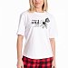 Женская футболка изготовлена из хлопкового полотна, что обеспечивает комфорт и хорошую воздухопроницаемость. Футболка имеет короткий рукав и круглый вырез горловины, что придает ей классический стильный вид. Такая модель базового белого цвета с оригинальным принтом отлично сочетается с джинсами, брюками или юбкой. Изготовленная из натуральной ткани, футболка обеспечит комфорт в течение всего дня.