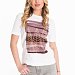 Женская футболка выполнена из однотонной кулирки с лайкрой. С коротким рукавом и круглым вырезом горловины, оформленным планкой. Спереди нанесён принт.