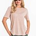 Женская футболка выполнена из поливискона. С коротким рукавом и круглым вырезом горловины, оформленным бейкой.
