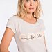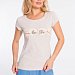 Футболка выполнена из кулирки с лайкрой. С коротким втачным рукавом и круглым вырезом горловины, оформленным планкой. Спереди нанесён принт.