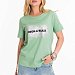 Футболка из однотонной кулирки, 100% хлопок. С коротким втачным рукавом и притачной планкой по горловине. Спереди нанесён принт.