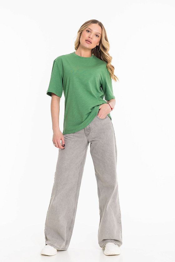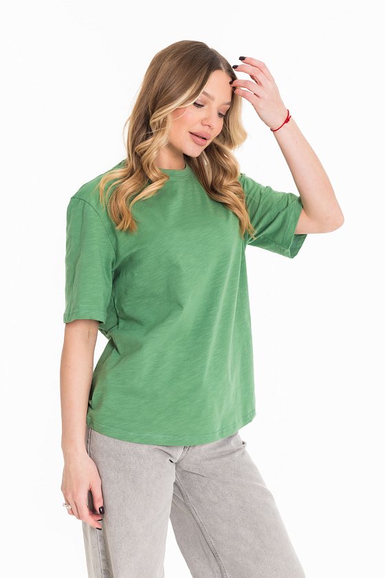 Женская футболка изготовлена из хлопкового полотна - кулирка "фламли", что обеспечивает комфорт и хорошую воздухопроницаемость. Футболка имеет короткий рукав и круглый вырез горловины, что придает ей классический стильный вид. Такая модель футболки отлично сочетается с джинсами, брюками или юбкой. Изготовленная из натуральной ткани, футболка обеспечит комфорт в течение всего дня.