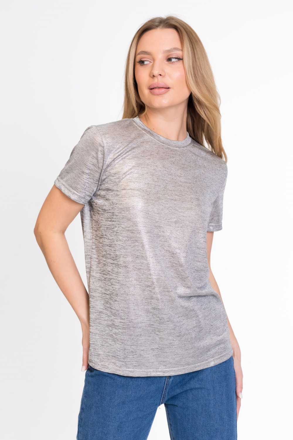 Футболка женская из однотонной вискозы с напылением.