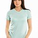 Футболка выполнена из однотонного полотна вискоза с напылением. Силуэт футболки облегающий, короткий рукав с отворотом, горловина имеет круглый вырез.