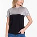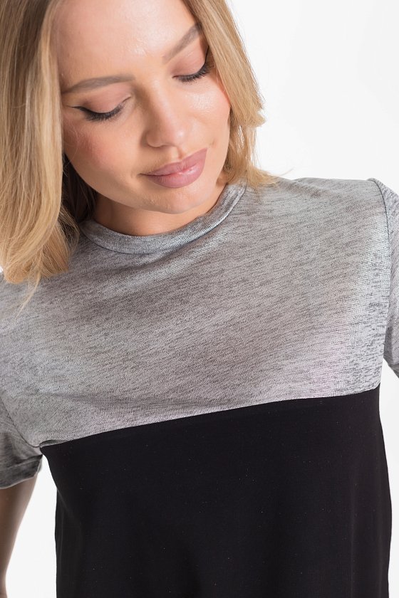 Футболка из двух видов ткани - кулирки с лайкрой и вискозы цвета напыления серебра.