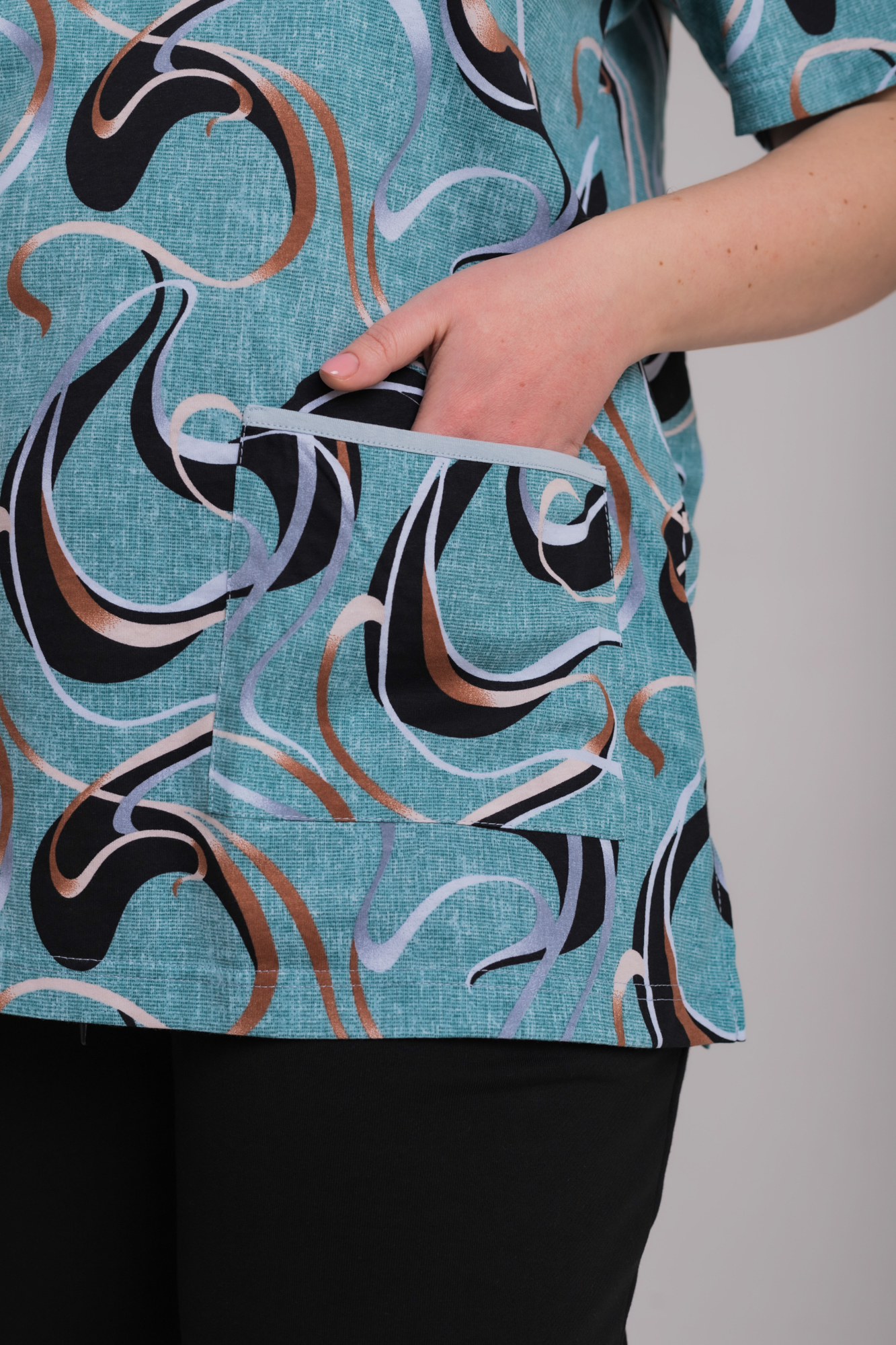 Лаконичная и комфортная футболка из мягкой кулирки — приятная к телу, дышащая и удобная для ежедневной носки. Круглый вырез горловины оформлен аккуратной окантовкой, короткий рукав обеспечивает свободу движений. По бокам расположены практичные накладные карманы с контрастной отделкой, добавляющей модели выразительности. Рисунок на полотне создаёт современный, динамичный образ. Прямой свободный силуэт и оптимальная длина делают эту футболку универсальной и функциональной в любом гардеробе.