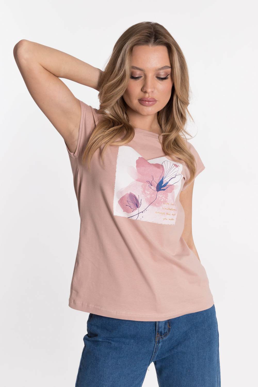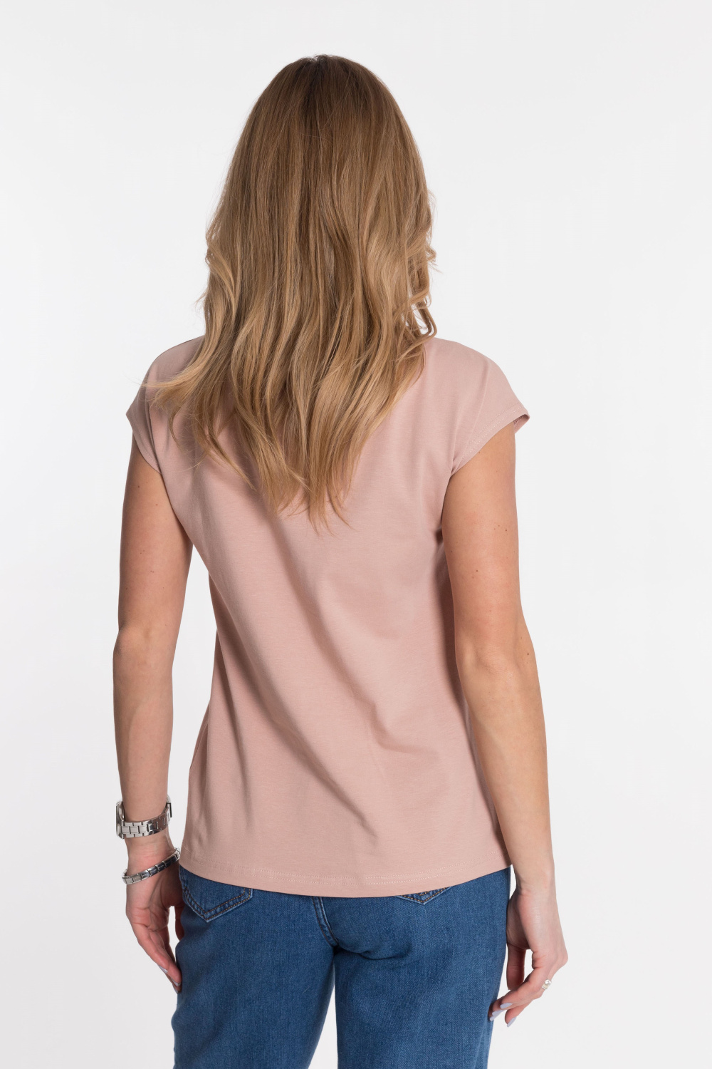 Футболка из однотонной кулирки с лайкрой.