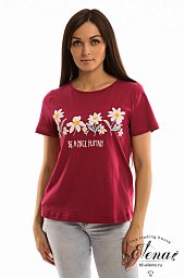 Футболка выполнена из однотонного хлопка жаккард. С коротким втачным рукавом, овальной горловиной и разрезами в боковых швах.