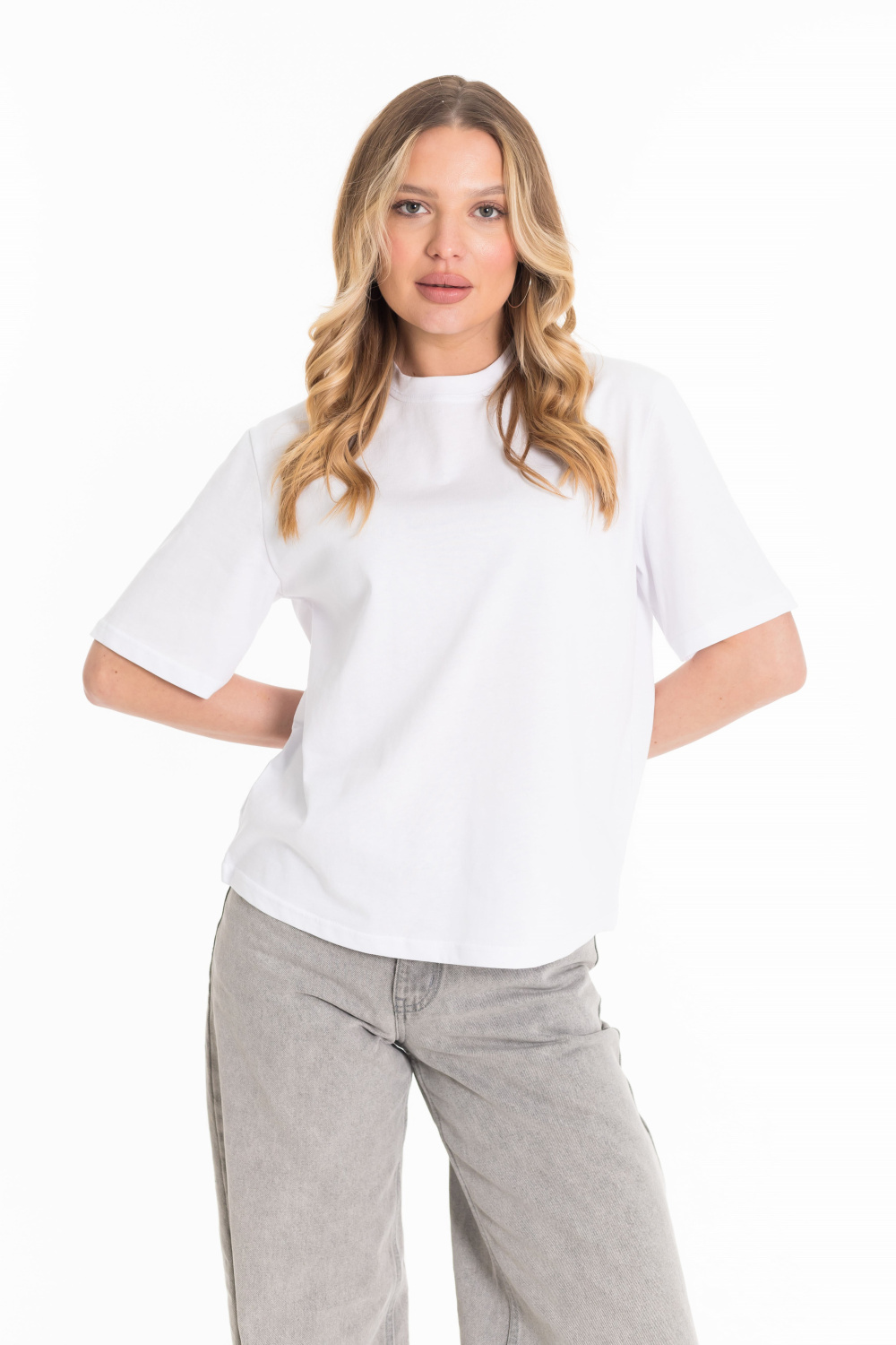 Женская футболка изготовлена из хлопкового полотна, что обеспечивает комфорт и хорошую воздухопроницаемость. Футболка имеет короткий рукав и круглый вырез горловины, что придает ей классический стильный вид. Такая модель базового белого цвета отлично сочетается с джинсами, брюками или юбкой. Изготовленная из натуральной ткани, футболка обеспечит комфорт в течение всего дня.