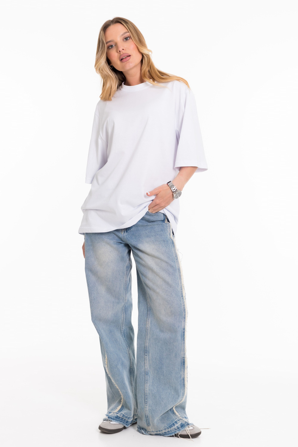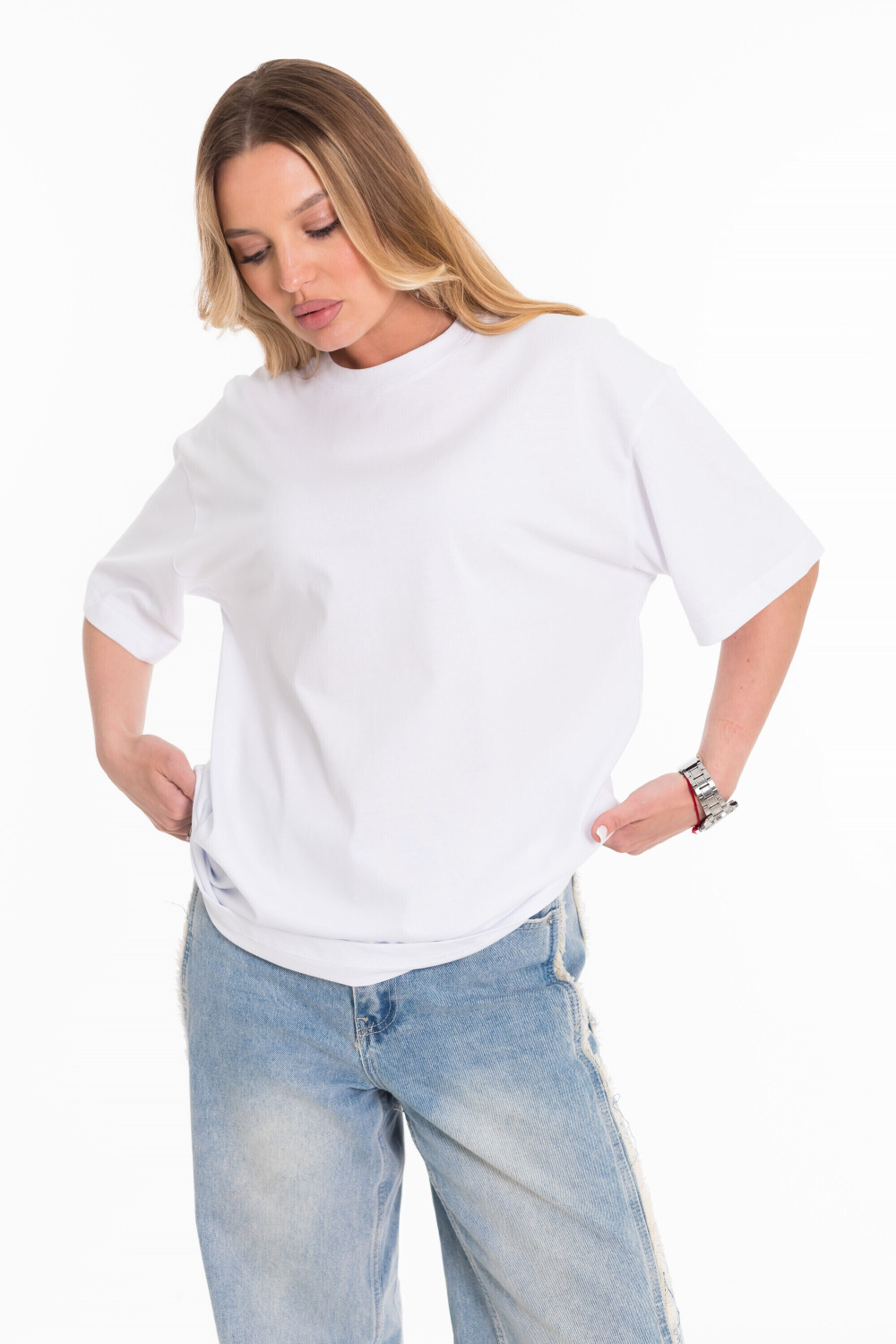 Практичная и комфортная футболка из легкой, дышащей ткани — отличный выбор для повседневного гардероба. Модель из белой кулирки с классическим круглым вырезом и свободным кроем не сковывает движения и обеспечивает комфорт в течение всего дня. Универсальный фасон подходит как мужчинам, так и женщинам. Идеально для отдыха, домашнего использования или неформальных образов. Легко сочетается с джинсами, шортами и спортивной одеждой.