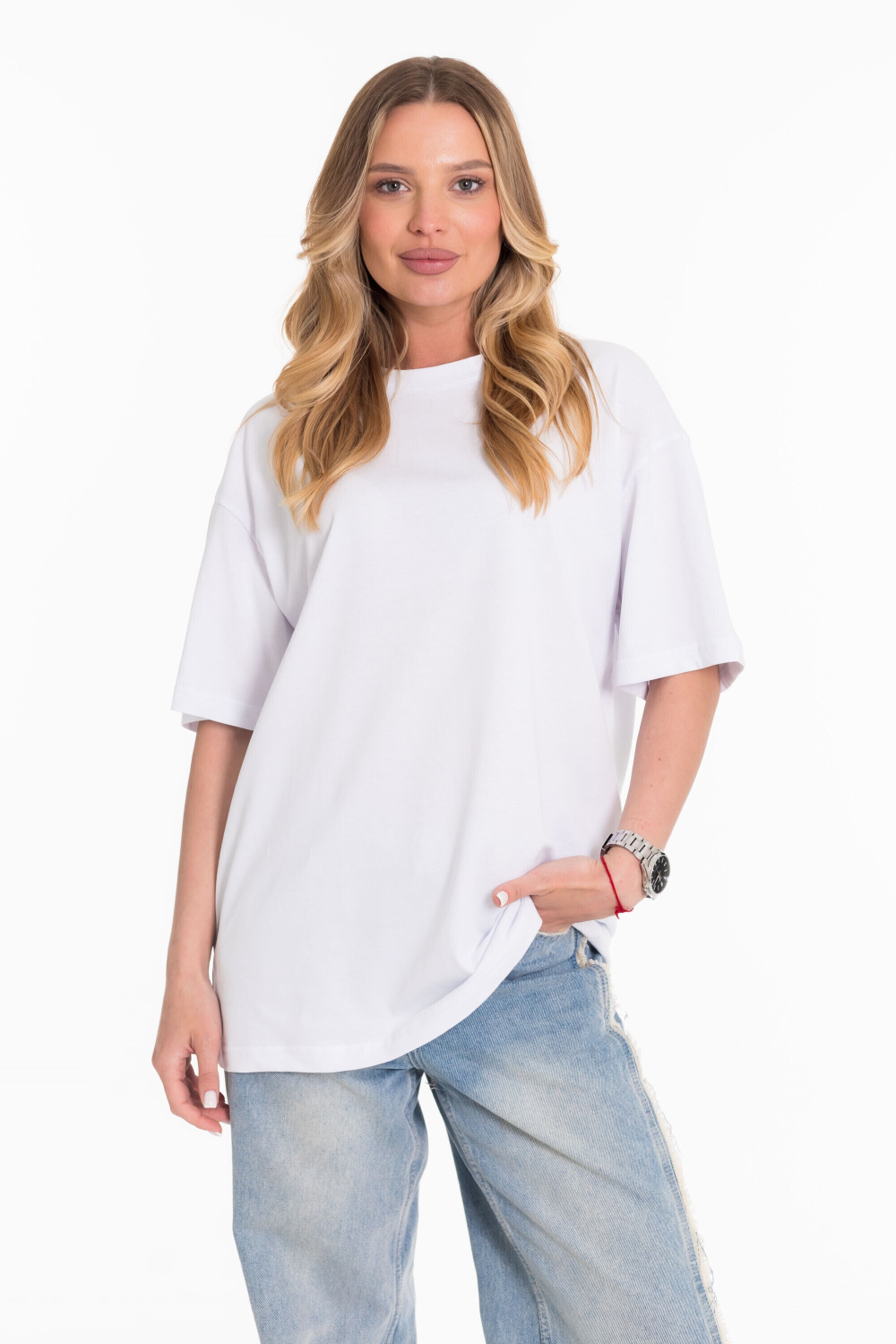 Практичная и комфортная футболка из легкой, дышащей ткани — отличный выбор для повседневного гардероба. Модель из белой кулирки с классическим круглым вырезом и свободным кроем не сковывает движения и обеспечивает комфорт в течение всего дня. Универсальный фасон подходит как мужчинам, так и женщинам. Идеально для отдыха, домашнего использования или неформальных образов. Легко сочетается с джинсами, шортами и спортивной одеждой.