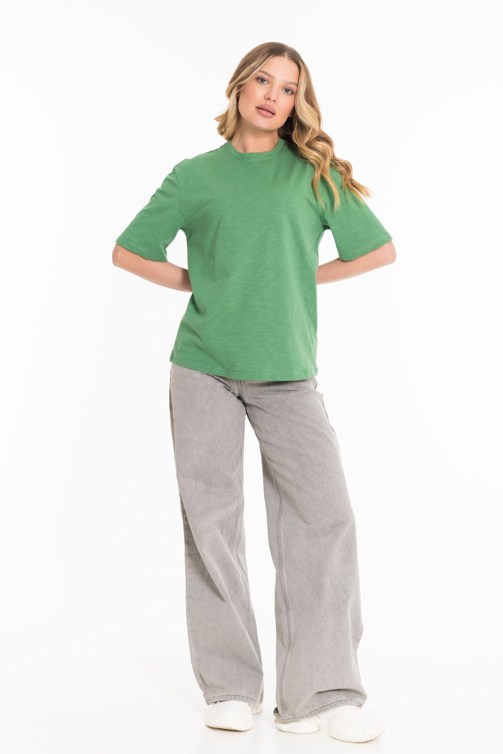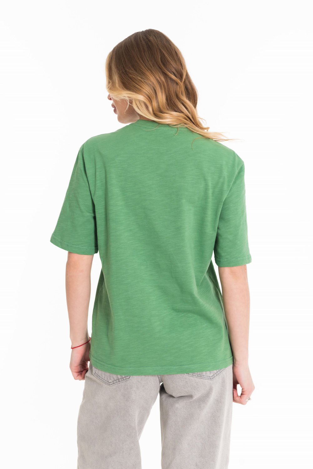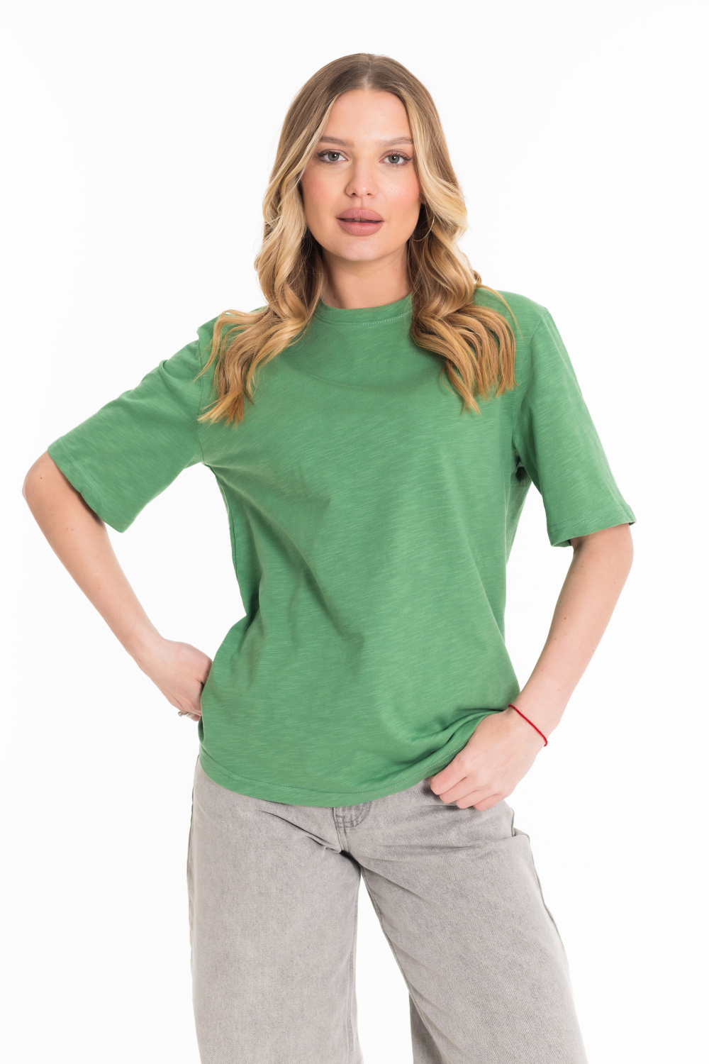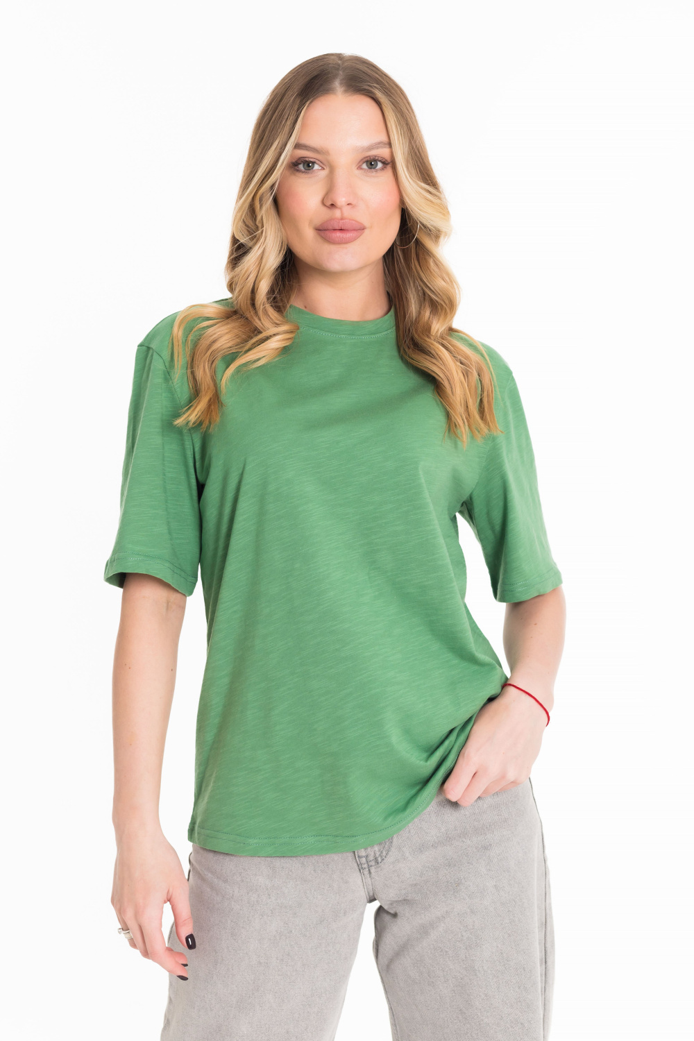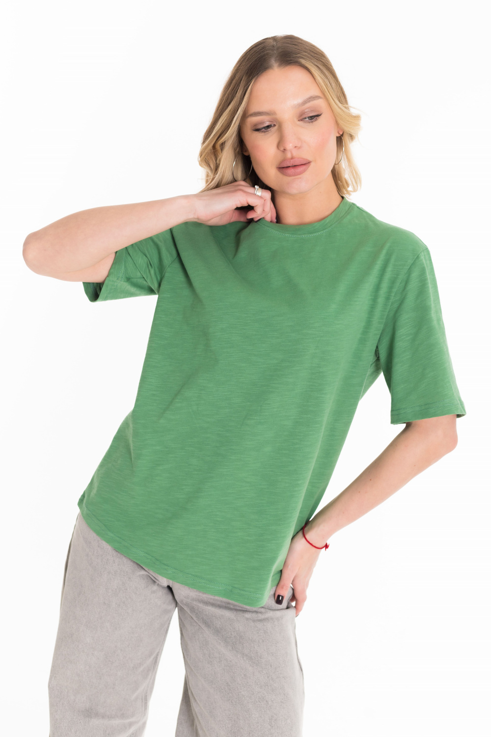 Женская футболка изготовлена из хлопкового полотна - кулирка "фламли", что обеспечивает комфорт и хорошую воздухопроницаемость. Футболка имеет короткий рукав и круглый вырез горловины, что придает ей классический стильный вид. Такая модель футболки отлично сочетается с джинсами, брюками или юбкой. Изготовленная из натуральной ткани, футболка обеспечит комфорт в течение всего дня.
