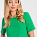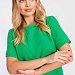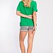 Футболка выполнена из хлопкового полотна - муслина. С коротким втачным рукавом и овальным вырезом горловины. Внизу, в боковых швах небольшие разрезы.