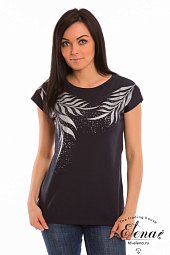 Футболка женская, облегающего силуэта, выполнена из кулирки с лайкрой. Горловина с круглым вырезом, рукав короткий. Спереди нанесён термопринт.