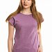 Футболка выполнена из однотонного полотна кулирка фламли. Горловина с круглым вырезом, короткие цельнокроеные рукава с отворотами, украшенными металлическими хольнитенами. Внизу, спереди нанесён принт.