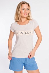 Футболка из однотонной кулирки, 100% хлопок. С коротким втачным рукавом и притачной планкой по горловине. Спереди нанесён принт.