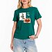 Женская футболка с принтом спереди изготовлена из хлопкового полотна с добавлением лайкры. Футболка с коротким втачным рукавом и круглым вырезом горловины, что придает ей классический стильный вид. Такая модель футболки отлично сочетается с джинсами, брюками или юбкой. Изготовленная из натуральной ткани, футболка обеспечит комфорт в течение всего дня.