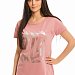 Футболка с цельнокроеным рукавом выполнена из х/б полотна с лайкрой. Круглый вырез горловины обработан бейкой, спереди нанесён принт.