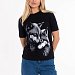 Женская футболка с принтом изготовлена из хлопкового полотна с добавлением лайкры, что обеспечивает комфорт и хорошую воздухопроницаемость. Футболка имеет короткий рукав и круглый вырез горловины, что придает ей классический стильный вид. Такая модель футболки отлично сочетается с джинсами, брюками или юбкой. Изготовленная из натуральной ткани, футболка обеспечит комфорт в течение всего дня.
