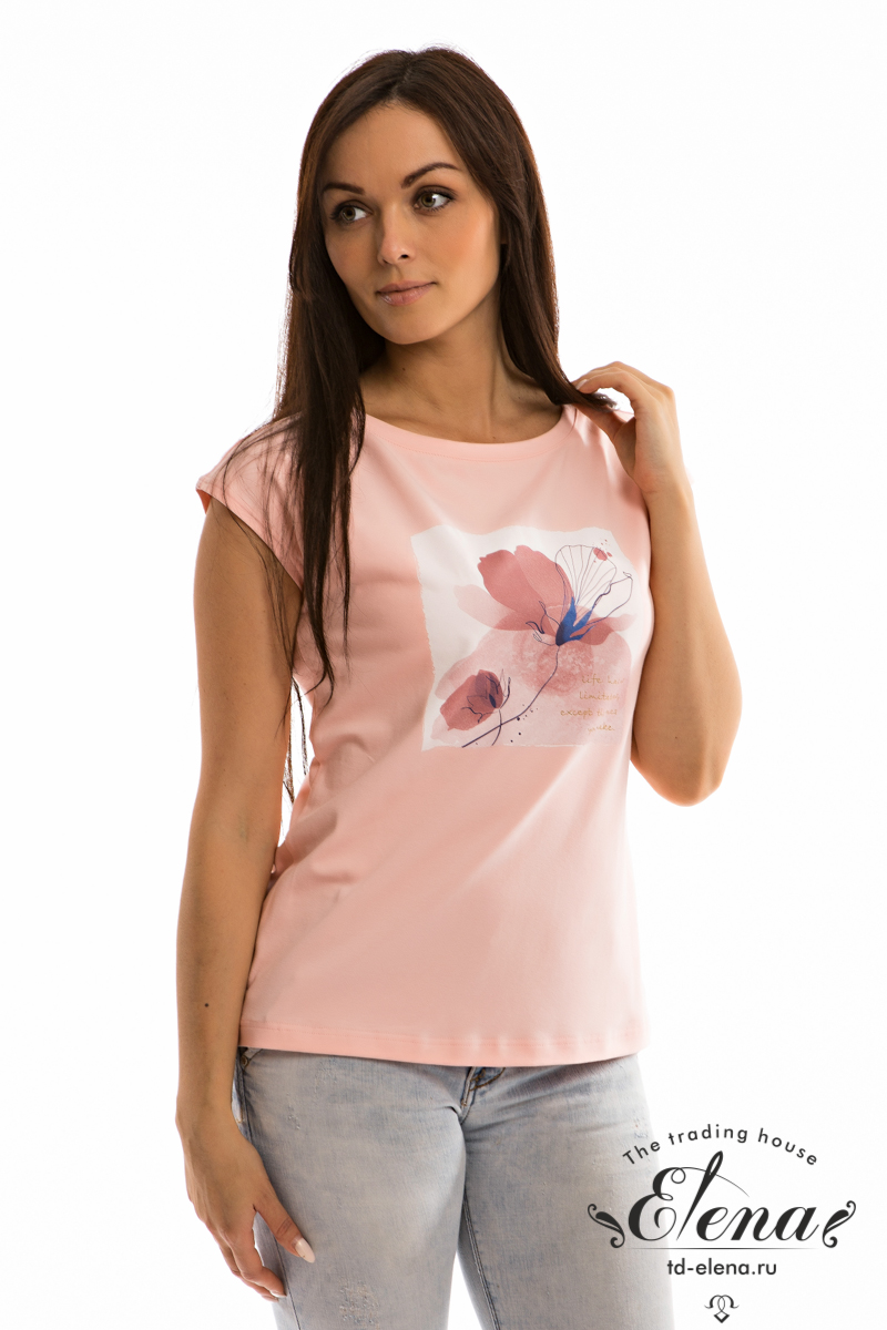 Женская футболка — отличный выбор для повседневного гардероба. Она изготовлена из мягкой и эластичной ткани — однотонной кулирки с добавлением лайкры, что обеспечивает комфорт при носке и свободу движений. Горловина футболки имеет форму «лодочки», линия плеча слегка спущена, а короткий рукав добавляет изделию лёгкость. Однотонный дизайн футболки дополнен принтом спереди, что придаёт ей стильный вид.