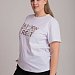Женская футболка с принтом спереди изготовлена из хлопкового полотна с добавлением лайкры. Футболка с коротким втачным рукавом и круглым вырезом горловины, что придает ей классический стильный вид. Такая модель футболки отлично сочетается с джинсами, брюками или юбкой. Изготовленная из натуральной ткани, футболка обеспечит комфорт в течение всего дня.