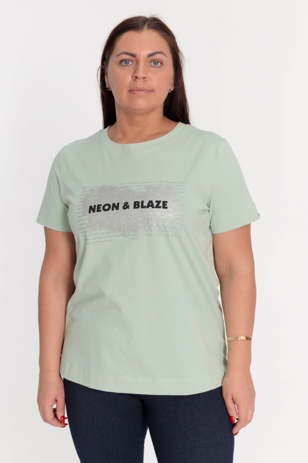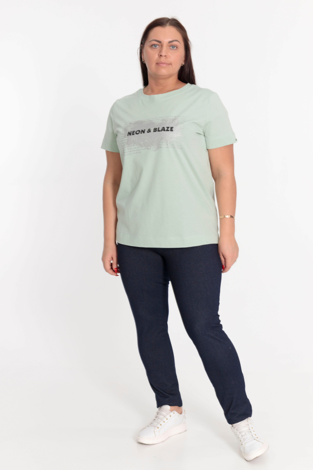Футболка из однотонной кулирки, 100% хлопок. С коротким втачным рукавом и притачной планкой по горловине. Спереди нанесён принт.