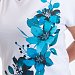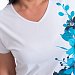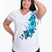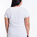 Футболка имеет V-образный вырез, который делает образ более элегантным и стильным. Спущенная линия плеча добавляет свободу движений, а закругления низа к боковым швам придают модели женственность.