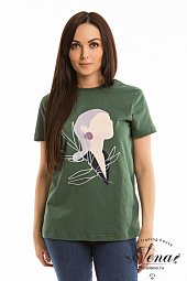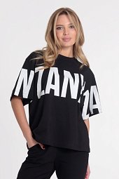 Футболка оверсайз силуэта из однотонной кулирки, 100% хлопок. С коротким рукавом и круглым вырезом горловины. Спереди нанесён принт.