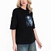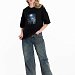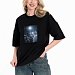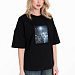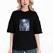 Женская футболка в стиле оверсайз с короткими спущенными рукавами. Футболка выполнена из футера двухнитки, круглый вырез горловины оформлен планкой. Крупный принт спереди.
